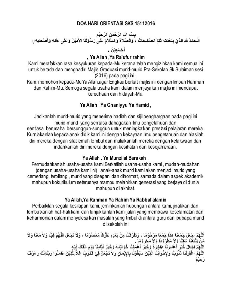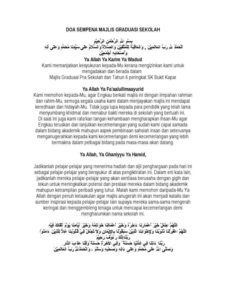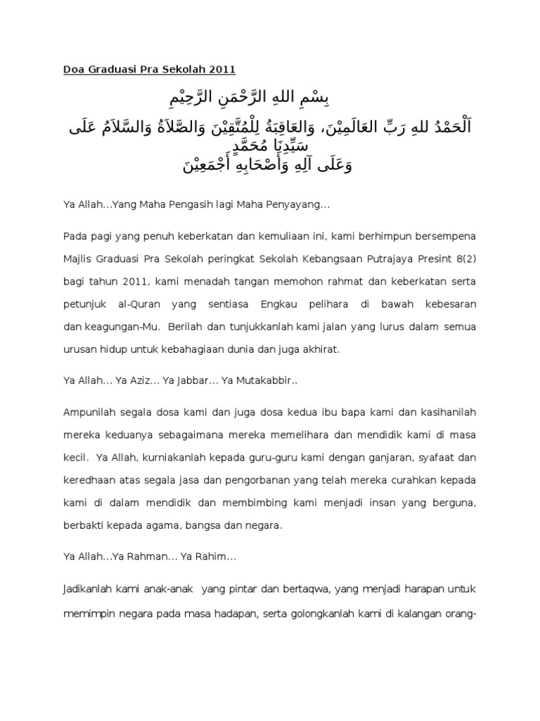 Teks Doa Majlis Graduasi Pra Pdf